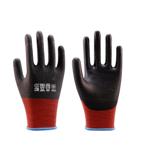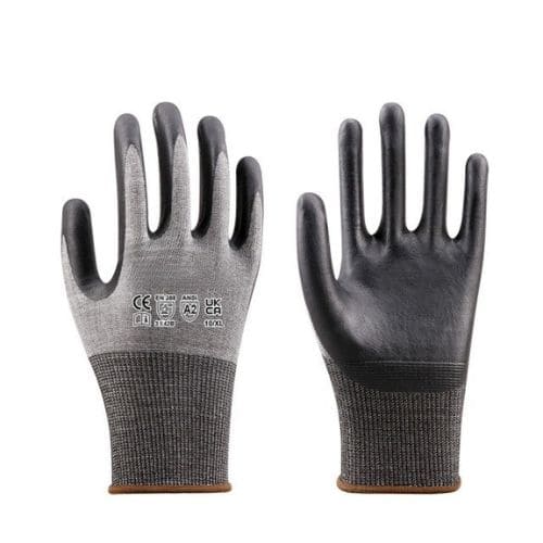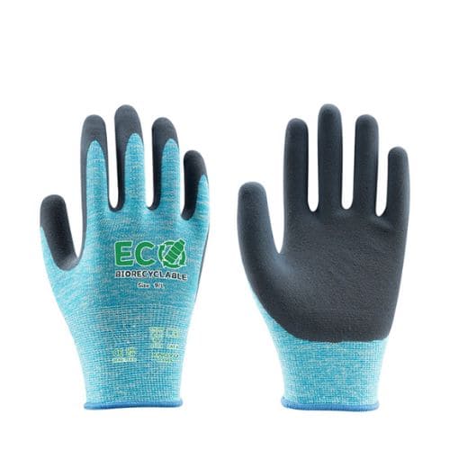 High-performance cut protection for demanding applications. Our 13-gauge HPPE+Spandex+Nylon+Steel liner with nitrile foam coating achieves EN388 4X42E and ANSI Cut A5 ratings. The breathable nitrile foam coating and liner combination provides superior comfort and dexterity while maintaining excellent grip in dry and slightly oily conditions. - Recycled Gloves Series